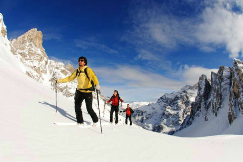Immergetevi nel paesaggio invernale incantato delle Dolomiti. Quando le cime sono coperte di neve e le condizioni sono ideali, non c'è posto migliore per escursioni di sci alpinismo e ciaspolate, circondati dalle montagne più famose del patrimonio mondiale dell'UNESCO.
